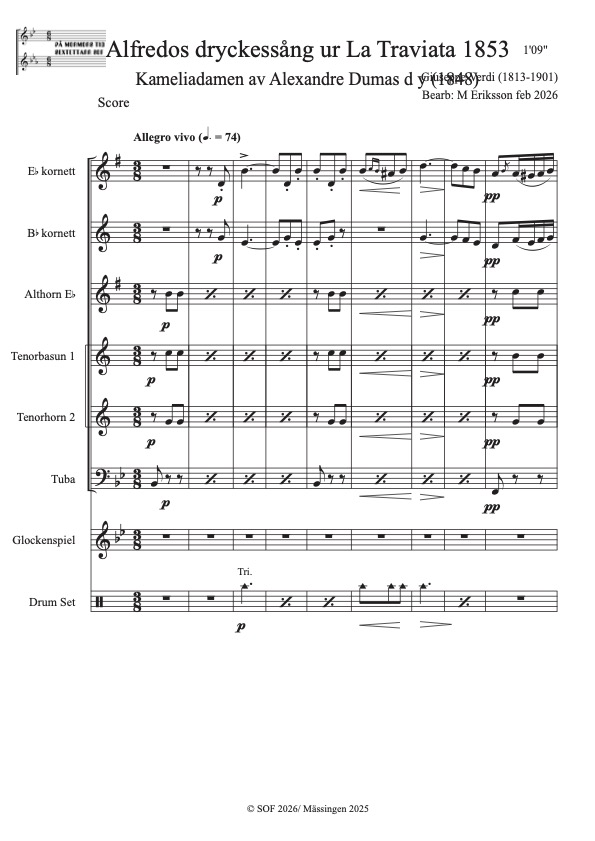 Verdi, Giuseppe (1813-1901) Bearb: M Eriksson Solo Ess-kornett