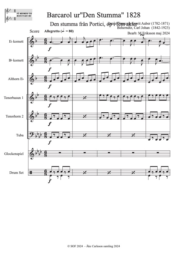 Auber, Daniel – Francois- Esprit (1782-1871) Bearb: M Eriksson Åke Carlsson samling donerad 2024