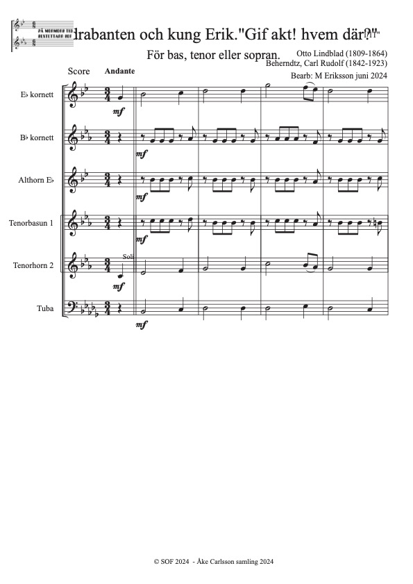 Solo för tenor Lindblad, Otto (1809-1864) Bearb: M Eriksson Åke Carlsson samling donerad 2024