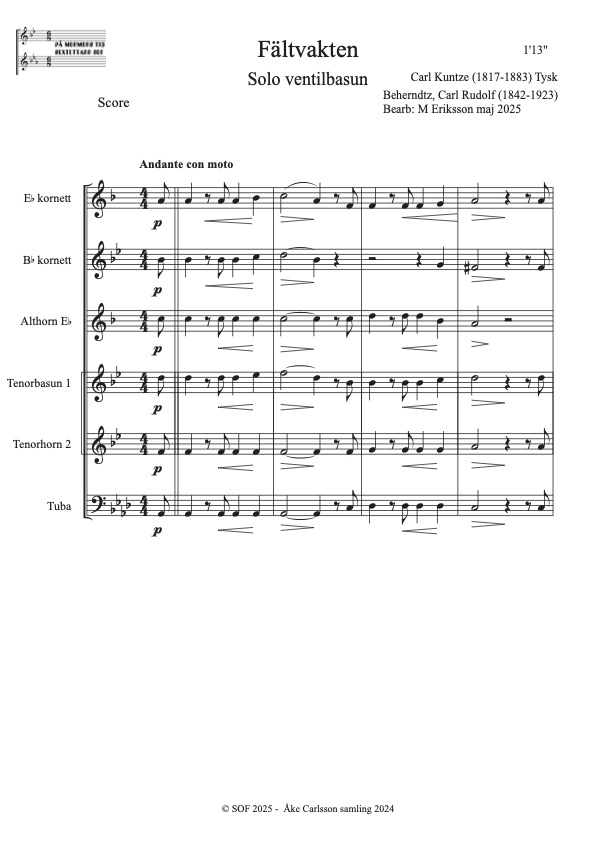 Solo ventilbasun Kunze, Carl (1817-1883) Bearb: M Eriksson Åke Carlsson samling donerad 2024