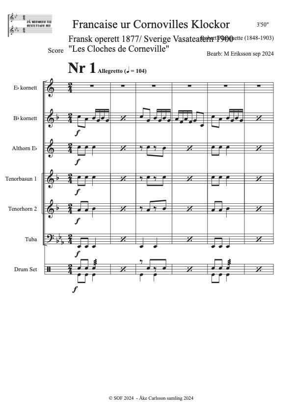 Planquette, Robert (1848-1903) Bearb: M Eriksson Åke Carlsson samling donerad 2024
