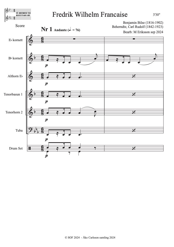 Bilse, Benjamin (1816-1902) Bearb: M Eriksson Åke Carlsson samling donerad 2024