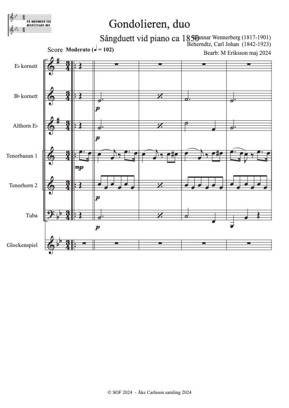 Wennerberg, Gunnar (1817-1901) Solo för Eb-kornett + Tenorbasun Bearb: M Eriksson Åke Carlsson samling donerad 2024
