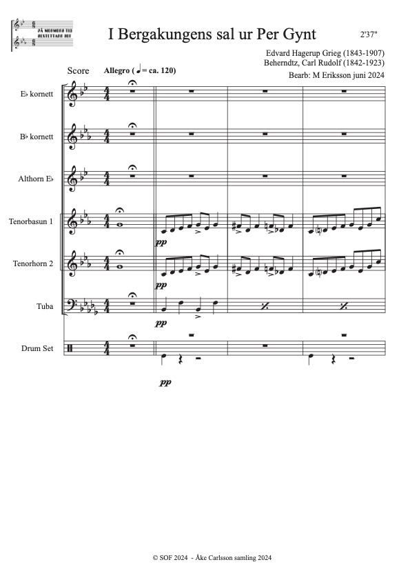 Grieg, Edward (1843-1907) Bearb: M Eriksson Åke Carlsson samling donerad 2024