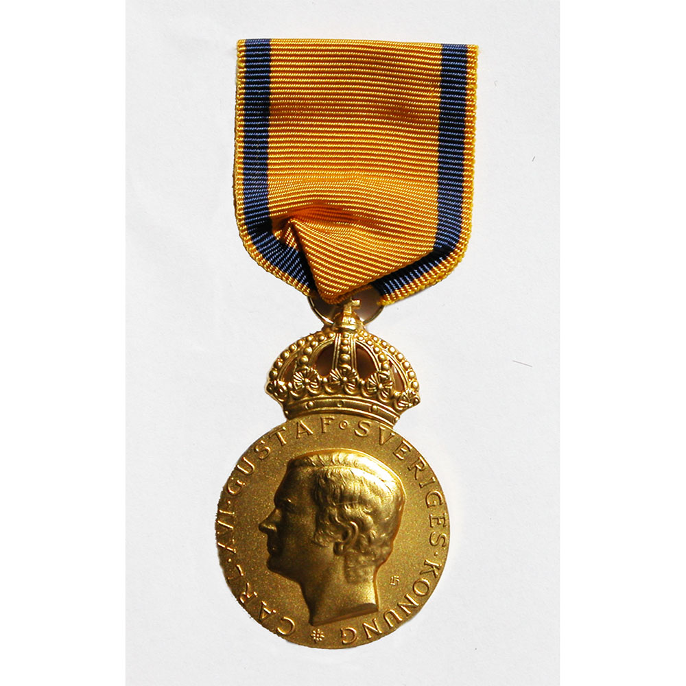 GULDMEDALJ MED HANS MAJ:S KONUNGENS BILD. Tilldelas den