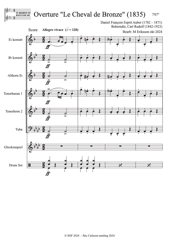 Auber, Daniel – Francois- Esprit (1782-1871) Bearb: M Eriksson Åke Carlsson samling donerad 2024