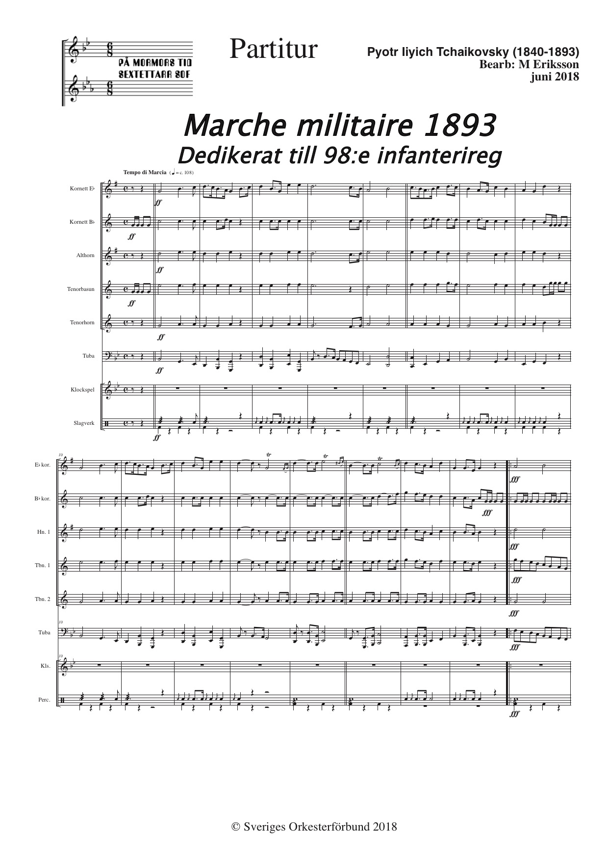 21211 + klockspel Dedikerat till 98:e infanterireg Tchaikovsk, Pyotr Ilyich (1840-1893)