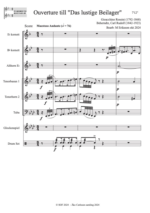 Rossini, Gioacchino (1792-1868) Bearb: M Eriksson Åke Carlsson samling donerad 2024