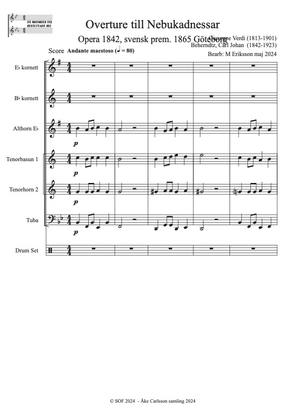 Verdi, Giuseppe (1813-1901) Bearb: M Eriksson Åke Carlsson samling donerad 2024