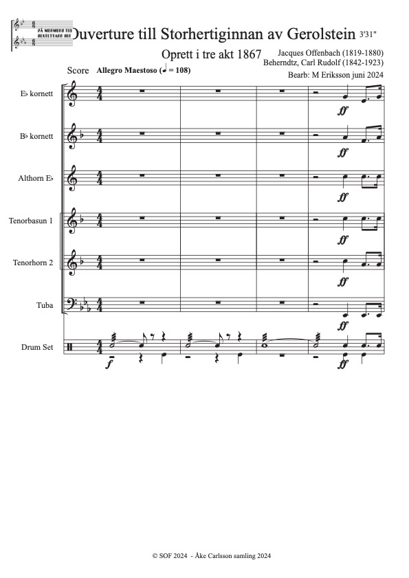 Offenbach, Jacques (1819-1880) Bearb: M Eriksson Åke Carlsson samling donerad 2024