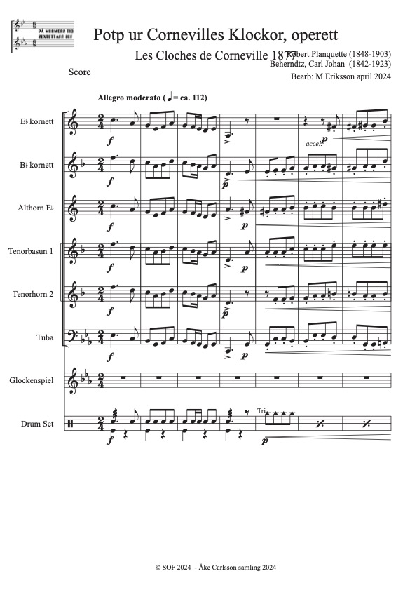 Planquette, Robert (1848-1903) Bearb: M Eriksson Åke Carlsson samling donerad 2024