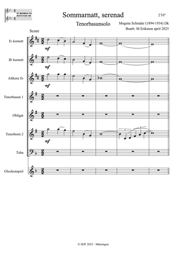 Schrader, Mogens (1894-1934) Bearb: M Eriksson Solostycke Tenorbasun Mässingen gåva 2025
